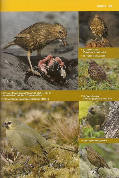 Regarding the tiny birds painted in the corner of the page, the briefest of notes is provided to draw attention to their similarity to the adjacent photographed bird. These notes provide a few descriptive comments along with maybe a note or two on their habitat and range.