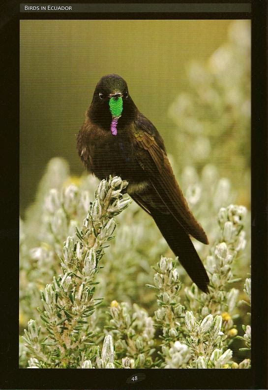 Regarding the tiny birds painted in the corner of the page, the briefest of notes is provided to draw attention to their similarity to the adjacent photographed bird. These notes provide a few descriptive comments along with maybe a note or two on their habitat and range.
